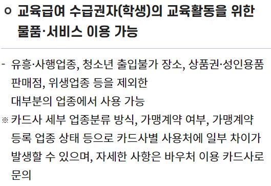 - 교육급여 바우처 이용 가능 카드사