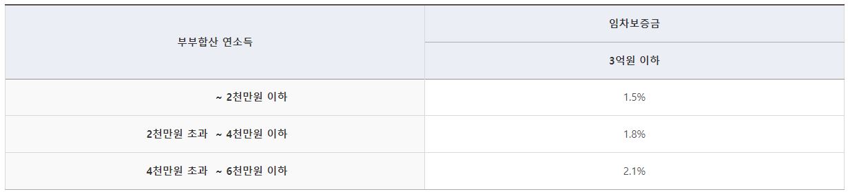 - 대출신청인과 배우자의 총소득이 5천만 원 이하인 자